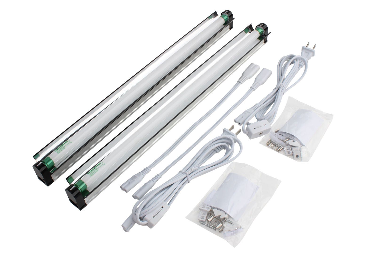LumiaStar LSF8181 a 18″ 18W T5HO Fluorescent 6500K Sunlight single strip Grow Lights great for Seeding Stage of Indoor Garden plants. Come with F54T5HO Blue tubes and 2″ wide mirror reflectors, 6Ft Power cord with switch and 6 In Daisy chain connect cable to linkable up to 50 strips with single power source.